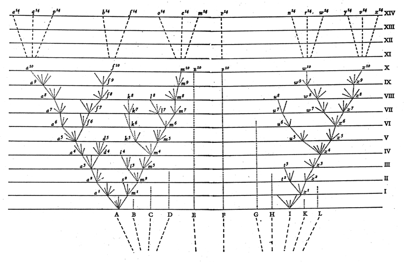 O diagrama acima foi criado pelo próprio Darwin, e se encontra